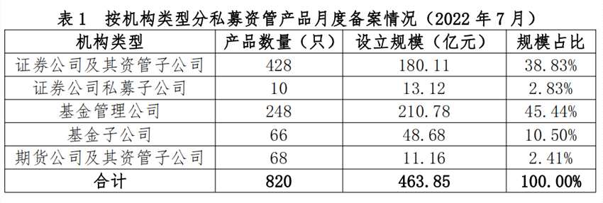 摘要: 8月24日,中基協(xié)發(fā)布證券期貨經(jīng)營(yíng)機(jī)構(gòu)私募資管產(chǎn)品備案月報(bào)(2022年7月)。數(shù)據(jù)顯示,7月證券期貨經(jīng)營(yíng)機(jī)構(gòu)當(dāng)月共備案私募資管產(chǎn)品820只,設(shè)立規(guī)模463.85億元,7月設(shè)立規(guī)模環(huán)比減少11.07%,