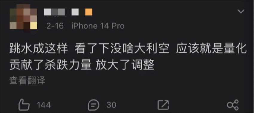 “看了下沒(méi)啥大利空,應(yīng)該就是量化貢獻(xiàn)了殺跌力量,放大了調(diào)整?!闭也坏皆蛳裙至炕??難怪有量化人士無(wú)奈表示“又背鍋,一跌就賴量化”。