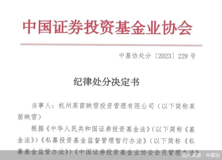 9月15日,中基協(xié)發(fā)布紀(jì)律處分決定書指出,杭州萊茵映雪投資管理有限公司(以下簡稱“萊茵映雪”)存在未向投資者披露關(guān)聯(lián)交易;未妥善保存私募基金相關(guān)材料;未更新登記信息;人員配置不符合要求等多項問題。因此,中基協(xié)決定對萊茵映雪公開譴責(zé),暫停受理其私募基金產(chǎn)品備案六個月。