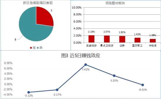 賺錢效應(yīng)說明:圖3即統(tǒng)計題材漲幅以及昨日漲停的個股(新股、ST股除外)隔日表現(xiàn),反應(yīng)短線資金追漲停后的次日收益情況(很差≤-2%<差≤0%><一般><2%≤較好<4%≤很好)。