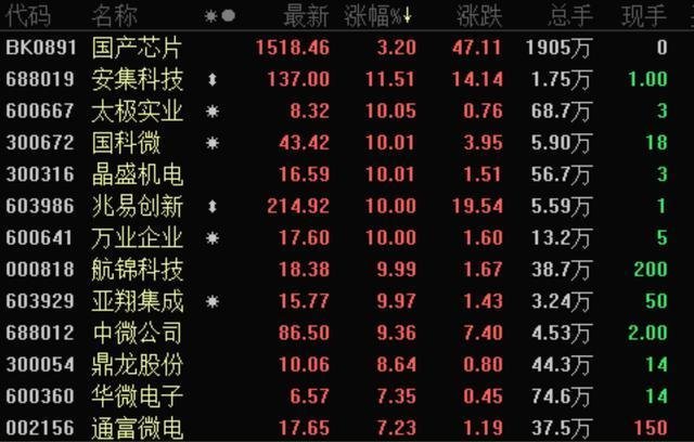 今天整個(gè)大基金投資板塊漲幅都不錯(cuò),長(zhǎng)電科技、華天科技、納思達(dá)、【景嘉微(300474)、股吧】、通富微電、晶方科技等都大漲。還有太極實(shí)業(yè)等漲停。集成電路概念整體上漲4.08%,半導(dǎo)體及元件上漲3.72%,是今天資本市場(chǎng)非?;钴S的板塊。