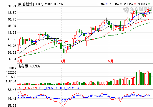 美國NYMEX WTI原油7月期貨周四收跌0.08美元,跌幅0.16%,報(bào)49.48美元/桶,ICE布倫特原油7月期貨周四收跌0.15美元,跌幅0.30%,報(bào)49.59美元/桶。