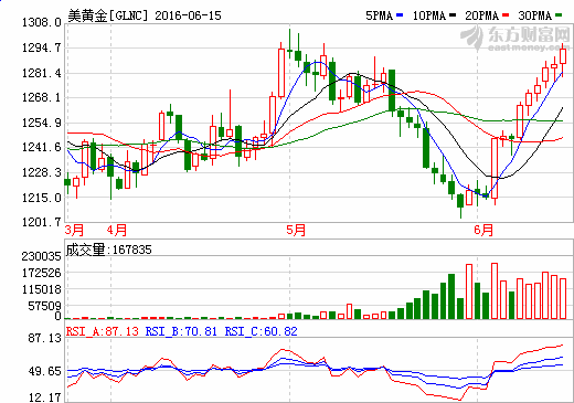 互聯(lián)網(wǎng)16日訊,周三(6月15日)美黃金窄幅震蕩,小幅收高。雖然PPI數(shù)據(jù)較為樂觀,但因加息前景不佳、英國脫歐風(fēng)險(xiǎn),金價(jià)仍維持在高位。