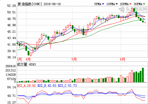周三(6月15日)油價連跌第五日,為2月來最長跌勢,因擔(dān)心英國可能退出歐盟,且美聯(lián)儲仍暗示今年加息兩次,盡管下調(diào)了成長預(yù)估。