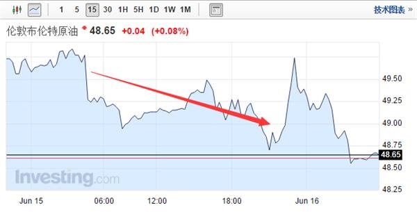 摘要: 周三(6月15日)油價連跌第五日,為2月來最長跌勢。點擊查看大圖布倫特原油隔夜行情周三(6月15日)油價連跌第五日,為2月來最長跌勢,因擔(dān)心英國可能退出歐盟,且美聯(lián)儲仍暗示今年加息兩次,盡管下調(diào)了成長