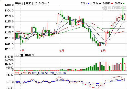 【避險(xiǎn)情緒仍有支撐 黃金錄得三周連漲】周五(6月17日)黃金探底回升,最低曾觸及1276.43美元/盎司,因英國(guó)留歐派議員遭襲引發(fā)部分多頭獲利了結(jié),不過避險(xiǎn)情緒仍在支撐金價(jià),美聯(lián)儲(chǔ)的鴿派決議的影響仍在。