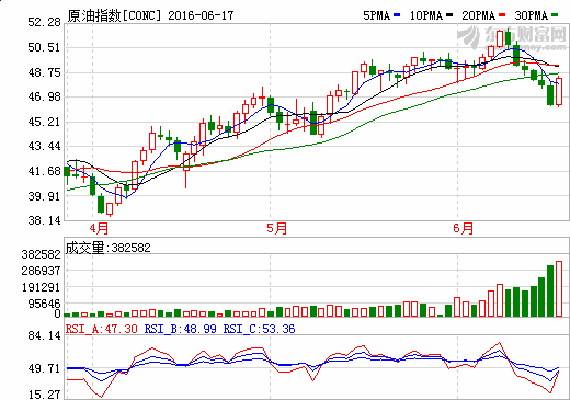 美國NYMEX 7月原油期貨周五收漲1.77美元,漲幅3.83%,報47.98美元/桶。本周累計下跌2.2%。布倫特原油8月合約收盤前擴大漲幅,收漲1.98美元,或4.20%,報49.17美元/桶。
