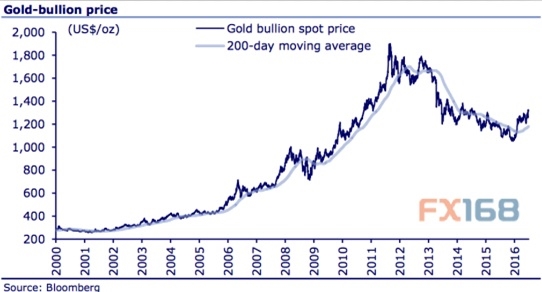 Wood指出,自2016年初以來金價已經(jīng)攀升24.6%,全球經(jīng)濟(jì)面臨的風(fēng)險以及避險屬性將令黃金成為投資寵兒。Wood在過去一段時間一直看好黃金。