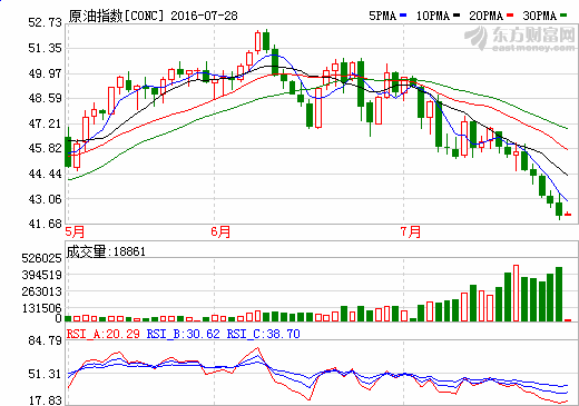 周四(7月28日)原油盤初,受美元指數(shù)回落的帶動,油價(jià)小幅回升。美油交投42.11美元/桶附近,漲幅為0.45%;布油交投于44.05美元/桶附近,漲幅為0.32%。