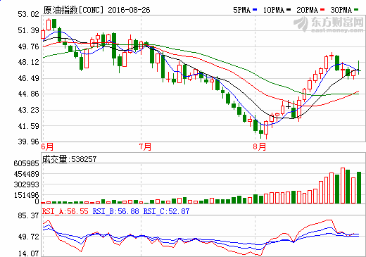美國WTI原油10月期貨周五收漲0.31美元,或0.65%,報(bào)47.64美元/桶;布倫特原油10月期貨周五收漲0.25美元,或0.50%,報(bào)49.92美元/桶。