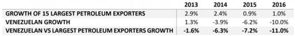 分析師表示,如果我們對比委內(nèi)瑞拉與其他主要原油出口國的經(jīng)濟(jì)增速走勢,我們會發(fā)現(xiàn)較為嚴(yán)重的背離趨勢。