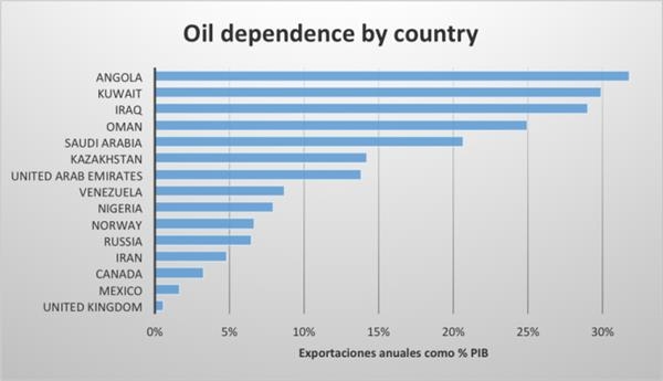 全球各大產(chǎn)油國對原油出口貿(mào)易依賴度排行榜