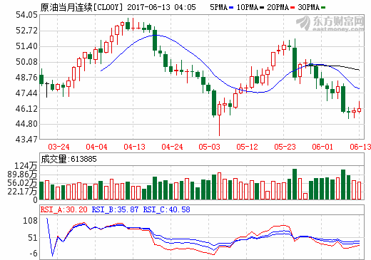 截至收盤(pán),美國(guó)WTI 7月原油期貨收漲0.25美元,漲幅0.55%,報(bào)46.08美元/桶。布倫特8月原油期貨收漲0.14美元,漲幅0.29%,報(bào)48.29美元/桶。