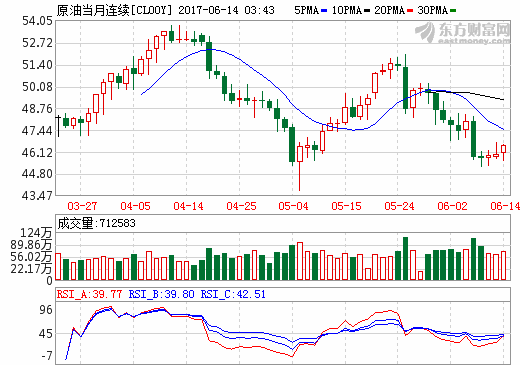 截至收盤,美國WTI 7月原油期貨收漲0.38美元,漲幅0.82%,報46.46美元/桶。ICE布倫特8月原油期貨收漲0.43美元,漲幅0.89%,報48.72美元/桶。