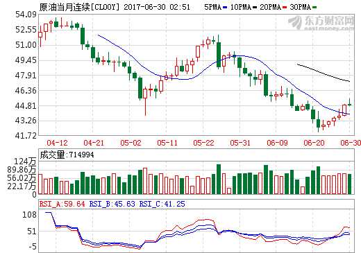 摘要: 點擊查看行情東方財富網(wǎng)30日訊,美東時間周四,油價小幅攀升,為連續(xù)第六個交易日收漲。美國原油產(chǎn)量下滑利好油價,同時美元再遭重挫更是加大了油價的上行動能。美國WTI原油期貨價格盤中最高觸及45.44美元