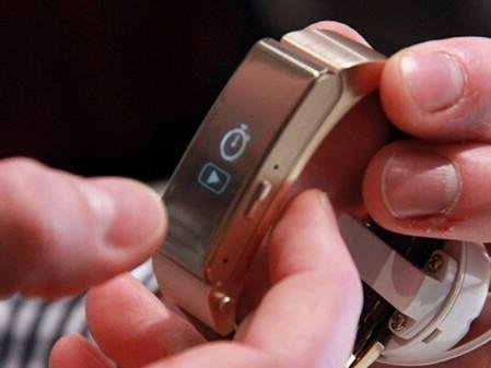華為Talk Band B2手環(huán)的整體色調(diào)比較統(tǒng)一,表身、底托以及金屬卡扣均為金色系,表面還加入了金屬拉絲效果。表帶部分采用深棕色歐洲上等頭層牛皮材質(zhì),與金色主體協(xié)調(diào),佩戴感覺十分舒適。同時,華為手環(huán)B2 采用可分離設(shè)計,主體部分是一塊長條曲面屏幕,同時按壓表鏈兩側(cè)突出的按鈕即可將屏幕拆下來,其側(cè)面采用了運動跑道的流線型設(shè)計,隱藏的耳機聽筒,證實了該品手環(huán)/藍牙耳機二合一的設(shè)計,打造了單一產(chǎn)品的雙重感官體驗。