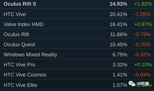 Steam 9月的硬件調(diào)查顯示,使用Rift S的SteamVR用戶占比24.94%。