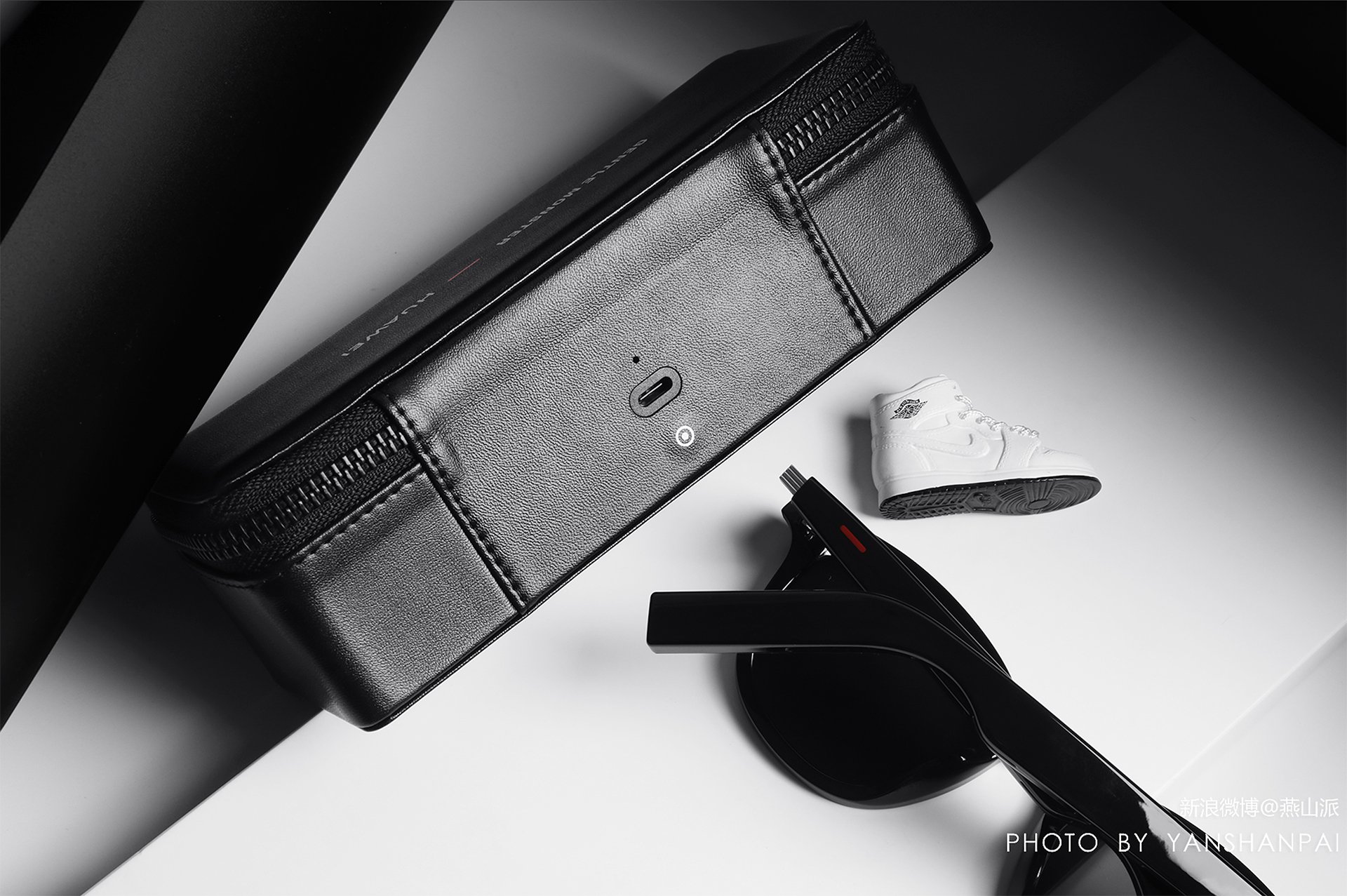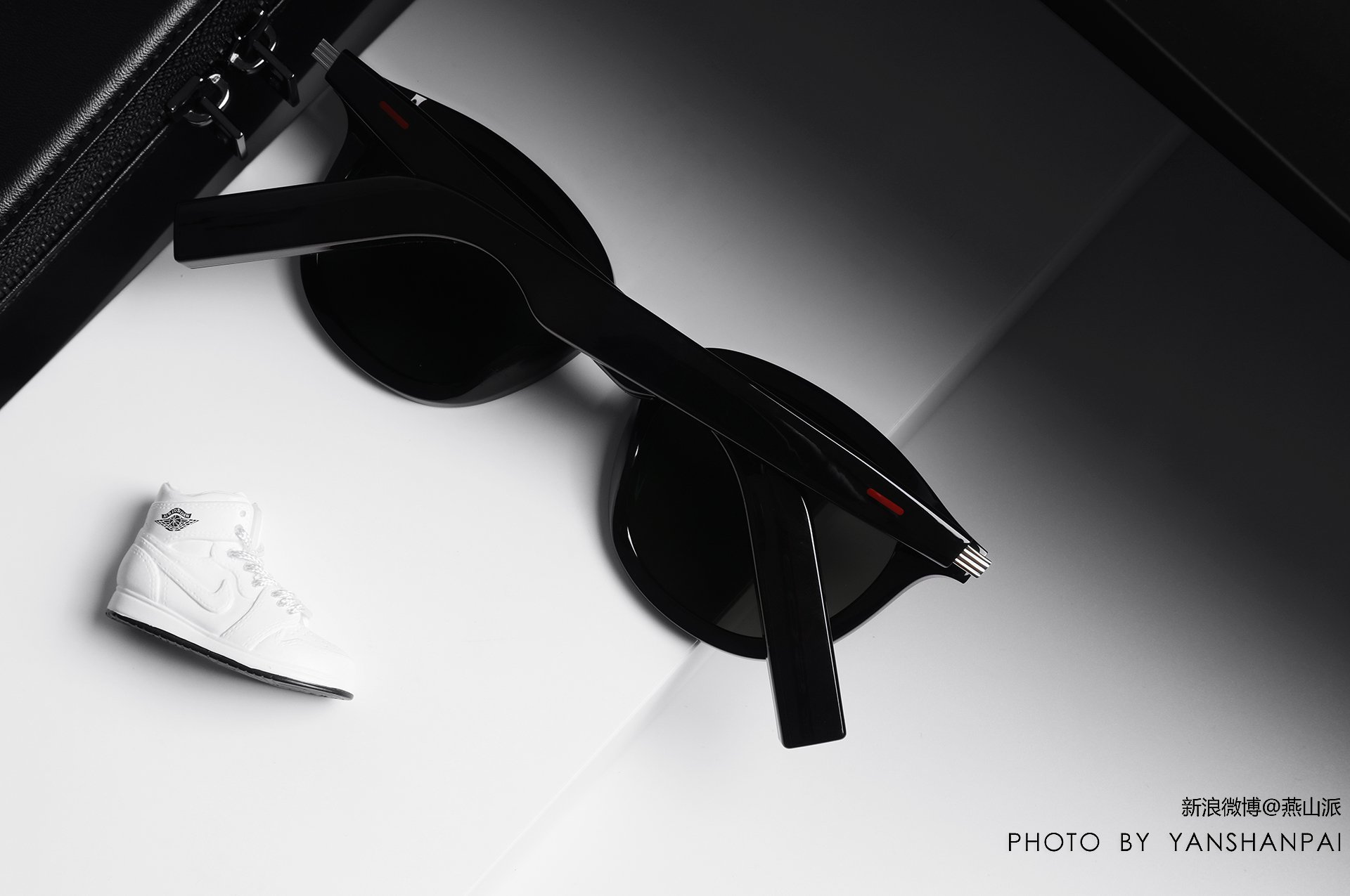 這次燕山派拍攝的是New FLATBA墨鏡系列SMART LANG款。 華為Eyewear II在設(shè)計(jì)之初,就秉持了一個(gè)設(shè)計(jì)原則:智能眼鏡首先是一款佩戴方便,時(shí)尚的眼鏡,而智能特性僅作為眼鏡的特性加持,讓信息獲取或交互更加簡單。其包裝盒有前代的軟質(zhì)折疊式設(shè)計(jì)改成了硬質(zhì)方盒設(shè)計(jì),收納時(shí)可以更好地保護(hù)眼鏡,同時(shí)還可以為華為Eyewear II充電(眼鏡盒本身無電池,需連接Type-C充電線為眼鏡充電)。