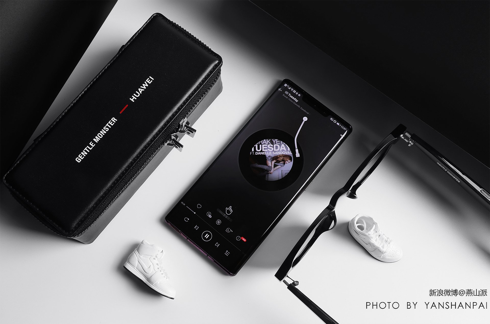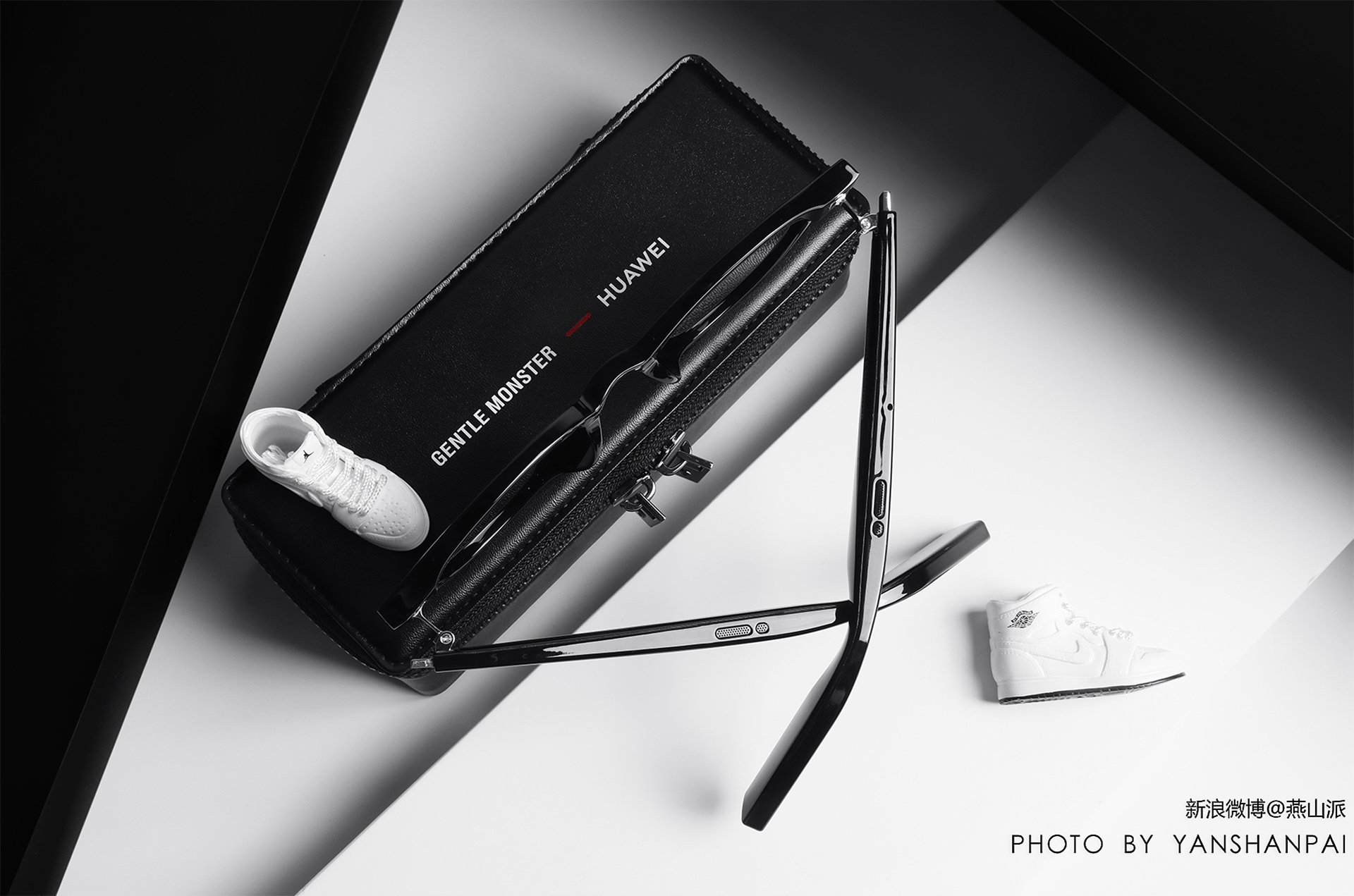 眼鏡腿內(nèi)側(cè)有GENTLE MONSTER標(biāo)識(shí)和HUAWEI標(biāo)識(shí)。