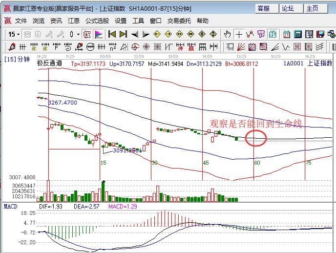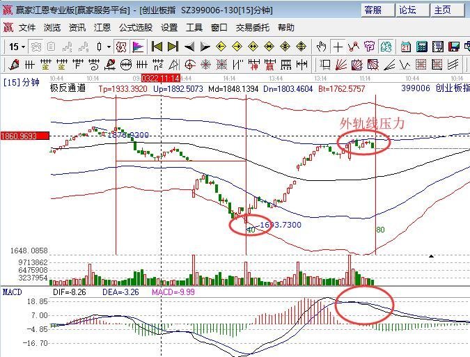 技術(shù)方面,滬指低開在百分比90度3126點附近后快速沖高回落,留一個點缺口未回補,午盤將試探90度支撐,14點后的第一根15分鐘K線是短周期時間點,觀察能否再度回抽到生命線附近;創(chuàng)業(yè)板再度上攻15分鐘極反通道外軌線處受阻,早盤10點時提到為短線賣點,逐級回踩生命線的動作有望開展;昨日大勢分析中談到,經(jīng)過二天的反攻不在適合放大倉位,創(chuàng)業(yè)板人氣已達成共識,應(yīng)等待回落時機或潛伏低位反彈不充分的個股。