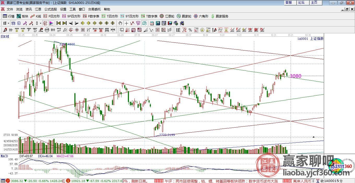 技術(shù)分析,指數(shù)早盤略微低開上攻回補缺口后震蕩走低,盤中觸及到江恩矩陣圖下降3*2線和極反通道藍色上軌線共振位3080點止跌震蕩。近兩天大勢分析中談到,指數(shù)越靠近極反通道紅色外軌線和江恩箱空間分割共振位3156點,應(yīng)分批獲利降低倉位,午盤關(guān)注日線藍色上軌線3080與60分鐘生命線3070區(qū)間,支撐上運行市場依然有震蕩上攻的動作,擊破此線則適當降低倉位。操作思路,指數(shù)延續(xù)在生命線強勢區(qū)域運行,底倉至5成,用3活動倉適當降低操作頻次。