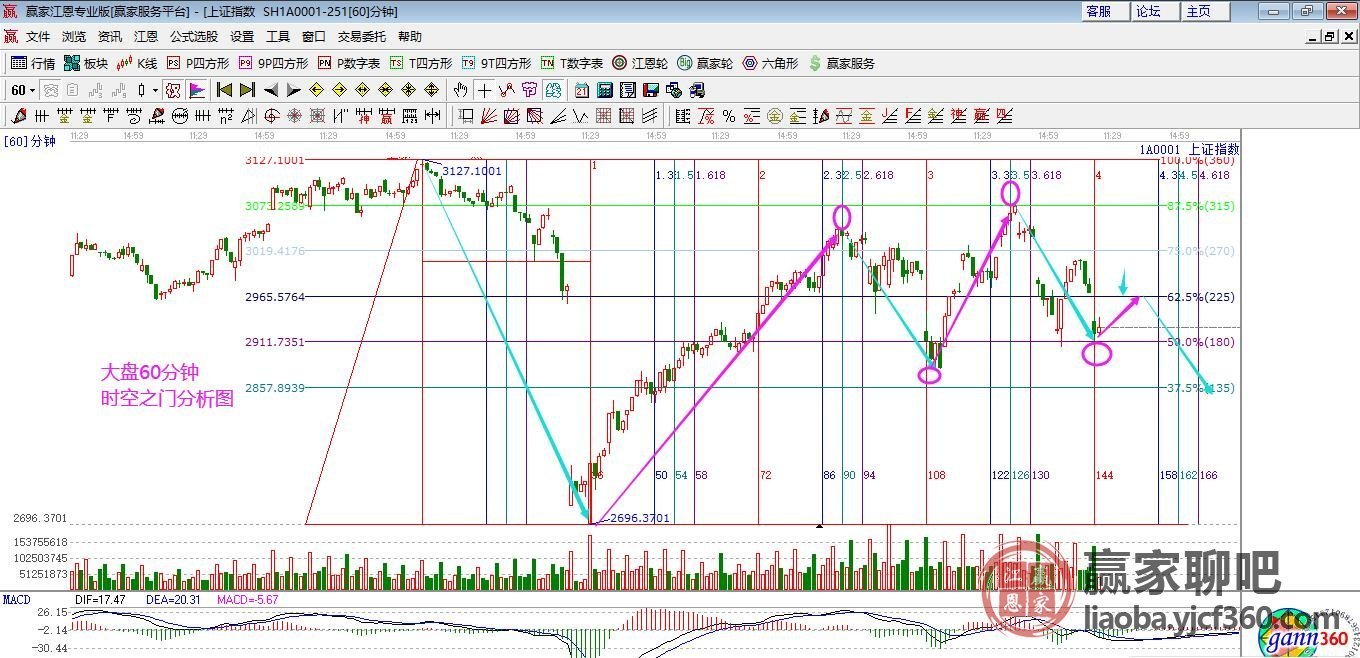 技術(shù)分析,從月初2號(hào)分析到7號(hào)培訓(xùn)課中均在解讀,3月份行情不好做,用【跌宕起伏】一詞來形容本月行情,大家也能看到市場(chǎng)一天漲一天跌。回顧本周解讀,9號(hào)分析中講到10號(hào)時(shí)間窗口有望展開超跌反彈,反攻如期而至,10號(hào)再度解讀反攻維持到11號(hào)早盤,隨后將再度轉(zhuǎn)入修整,贏家江恩通過時(shí)間序列對(duì)市場(chǎng)精準(zhǔn)測(cè)算一步步得到印證。下個(gè)時(shí)間窗口是16號(hào),在此期間市場(chǎng)預(yù)期維持修整?!鞠卵匾臅r(shí)間窗口后遇江恩箱上升2*1線則是未來幾個(gè)月重要的拐點(diǎn)】。今日早盤制作的60分鐘時(shí)空?qǐng)D,此位置依然是短線信號(hào),繼續(xù)等待日線拐點(diǎn)。操作策略,指數(shù)日線生命線上下震蕩,底倉(cāng)控制在3成,60分鐘生命線下運(yùn)行2成活動(dòng)倉(cāng)停止操作。