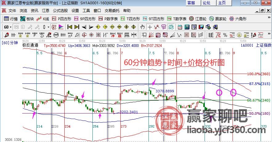 技術(shù)分析,2號大盤略微高開上至盤前分析的壓力位區(qū)(3238--3247)受阻回落,盤中下探至支撐3210點(diǎn)(最低3211)止跌,正式學(xué)員45周周報(bào)中解讀,按日線時(shí)間結(jié)構(gòu)分析,市場本周延續(xù)震蕩,60分鐘百分比180度上運(yùn)行,市場還有再度反攻生命線的動(dòng)作,圖中已標(biāo)注出本周短周期的時(shí)間節(jié)點(diǎn),學(xué)員通過波段百分比、黃金時(shí)間周期線做圖。
