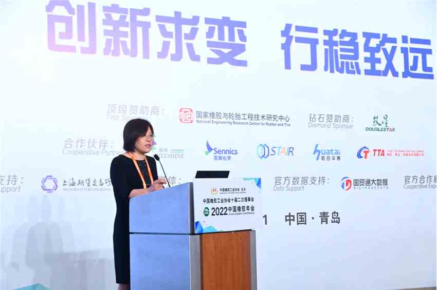 在2022中國(guó)橡膠年會(huì)主論壇上,中國(guó)橡膠工業(yè)協(xié)會(huì)會(huì)長(zhǎng)徐文英、青島科技大學(xué)校長(zhǎng)陳克正、上海期貨交易所副總經(jīng)理李輝,分別發(fā)表致辭。