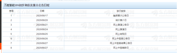 【萬勝智能IPO初步詢價及推介公告日程】