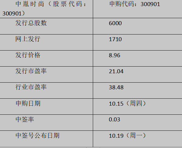中胤時(shí)尚申購發(fā)行數(shù)量,300901中胤申購時(shí)間和方法