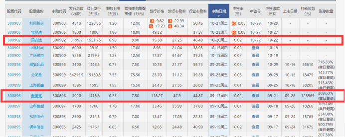 新股國安達的申購時間是10月20日,股票代碼是300902,申購代碼是300902上市地點是 深圳證券交易所,發(fā)行價格是15.38元/股,發(fā)行市盈率是27.25,參考行業(yè)市盈率46.37,知道了國安達的基本信息,下面我們來看一下國安達打新收益怎么樣?