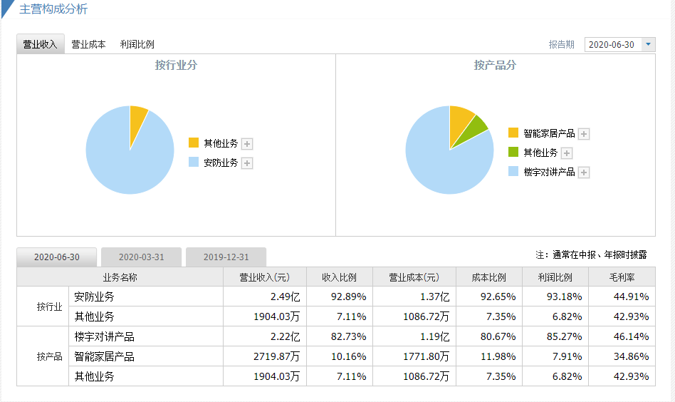 報(bào)告期內(nèi),公司主營(yíng)業(yè)務(wù)收入來(lái)自于樓宇對(duì)講產(chǎn)品和智能家居產(chǎn)品。