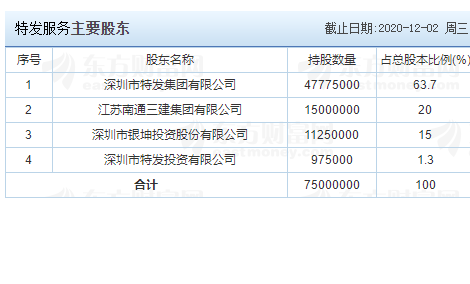 【特發(fā)服務主要股東】