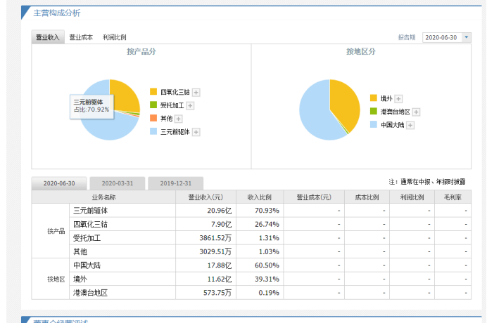 產(chǎn)品方面,公司長期堅(jiān)持以高電壓四氧化三鈷為研發(fā)重點(diǎn),報(bào)告期內(nèi)該類高端產(chǎn)品的銷量持續(xù)提升,推動公司四氧化三鈷銷售收入快速增長。模式方面,2019年公司改為以自營銷售為主要模式向廈門鎢業(yè)等客戶提供四氧化三鈷產(chǎn)品,疊加終端需求上升,推動公司四氧化三鈷銷售收入的增長。