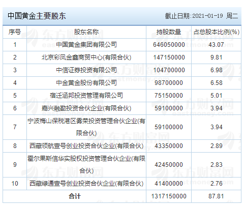 【中國黃金主要股東】