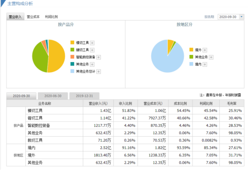 報(bào)告期內(nèi),公司基于材料、技術(shù)、工藝、裝備、渠道的共源性實(shí)施金屬切削工具系列化戰(zhàn)略布局,2017年在模切工具中推出主要用于印刷、包裝行業(yè)的輕型模切工具,2019年在鋸切工具中開始推出冷切金屬圓鋸片;此外,基于公司在重型模切工具行業(yè)的領(lǐng)先地位,2018年開始向市場(chǎng)推出重型模切工具的半成品熱處理鋼帶。基于自制專用裝備的技術(shù)經(jīng)驗(yàn)積累,公司2019年開始向產(chǎn)業(yè)鏈下游延伸,開發(fā)出了與金屬切削工具配套使用的智能數(shù)控裝備,以滿足客戶一站式采購需求,其中,2019年CNC全自動(dòng)圓鋸機(jī)已實(shí)現(xiàn)銷售,2020年柔性材料智能裁切機(jī)、帶鋸機(jī)床等實(shí)現(xiàn)銷售。