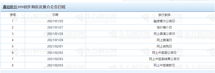 【鑫鉑股份IPO初步詢價(jià)及推介公告日程】