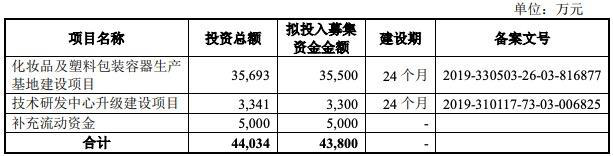 嘉亨家化擬募集資金4.38億元,其中3.55億元用于化妝品及塑料包裝容器生產(chǎn)基地建設(shè)項目,3300萬元用于技術(shù)研發(fā)中心升級建設(shè)項目,5000萬元用于補充流動資金。
