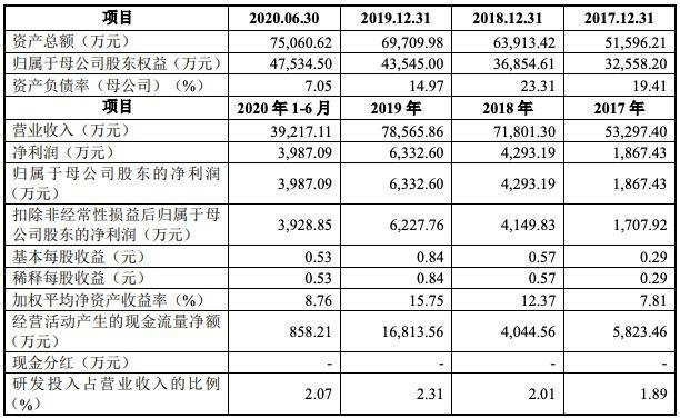 2017-2019年,嘉亨家化實現(xiàn)營業(yè)收入分別為5.33億元、7.18億元及7.86億元,2018年實現(xiàn)營業(yè)收入同比增長34.72%,2019年實現(xiàn)營業(yè)收入同比增長9.42%。同期,嘉亨家化實現(xiàn)凈利潤分別為1867.43萬元、4293.19萬元及6332.6萬元,2018年實現(xiàn)凈利潤同比增長129.90%,2019年實現(xiàn)凈利潤同比增長47.5%。