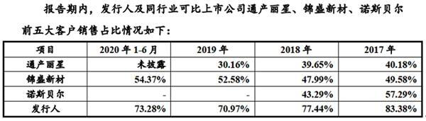 嘉亨家化在回復(fù)中披露了同業(yè)可比上市公司前五大客戶的銷售占比情況,如下表所示: