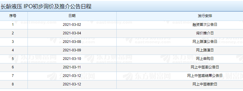 【長齡液壓IPO初步詢價(jià)及推介公告日程】