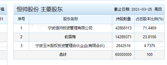【恒帥股份主要股東】