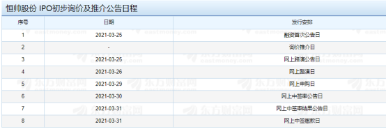【恒帥股份IPO初步詢價及推介公告日程】