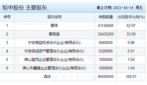 【炬申股份主要股東】