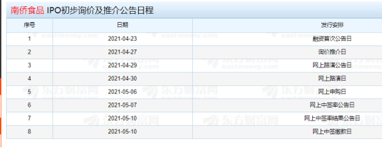 【南僑食品IPO初步詢價(jià)及推介公告日程】