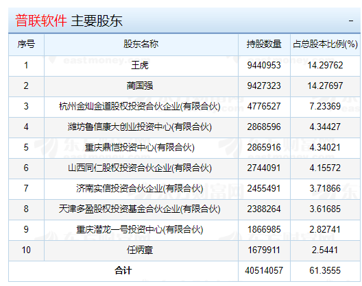 【普聯(lián)軟件主要股東】