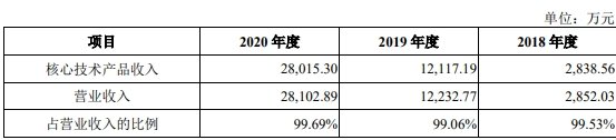 報告期各期,公司核心技術(shù)產(chǎn)品收入占營業(yè)收入的比例情況如下表所示: