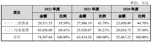 續(xù)深耕智慧水務(wù)產(chǎn)業(yè)鏈。其中二次供水是公司的傳統(tǒng)優(yōu)勢業(yè)務(wù),報告期內(nèi)收入占比分別為 44.70%、43.79%和 39.59%;同時,隨著公司持續(xù)成長,公司圍繞水務(wù)行業(yè)的產(chǎn)業(yè)鏈進(jìn)行了縱向的延伸拓展,向下游產(chǎn)業(yè)鏈延伸至污水處理領(lǐng)域,報告期內(nèi),公司污水處理業(yè)務(wù)收入占比分別為 55.30%、56.21%和 60.41%,已構(gòu)成主營業(yè)務(wù)收入的重要來源。