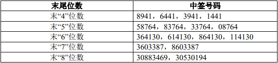 例如:申購配號(hào)為888888-888890,公布的中簽號(hào)碼為后三位888,后四位8686,等等。