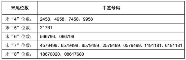 例如:申購配號為888888-888890,公布的中簽號碼為后三位888,后四位8686,等等。